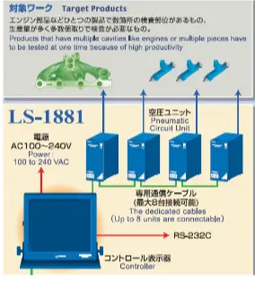 El LS-1881 consta de una unidad controladora basada en Windows® que puede manejar hasta 8 unidades neumáticas independientes para lograr tasas de producción de alta velocidad. Este paquete de prueba de fugas también se puede utilizar para probar simultáneamente varias cavidades en una sola pieza de producción. Utilizando el mismo sensor de presión diferencial (DPS) patentado que el probador de fugas de aire LS-1842, la unidad LS-1881 permite una amplia variedad de funciones de control de calidad, así como una operación simple, todas vistas y controladas desde una pantalla grande y completa. Panel LCD táctil a color.